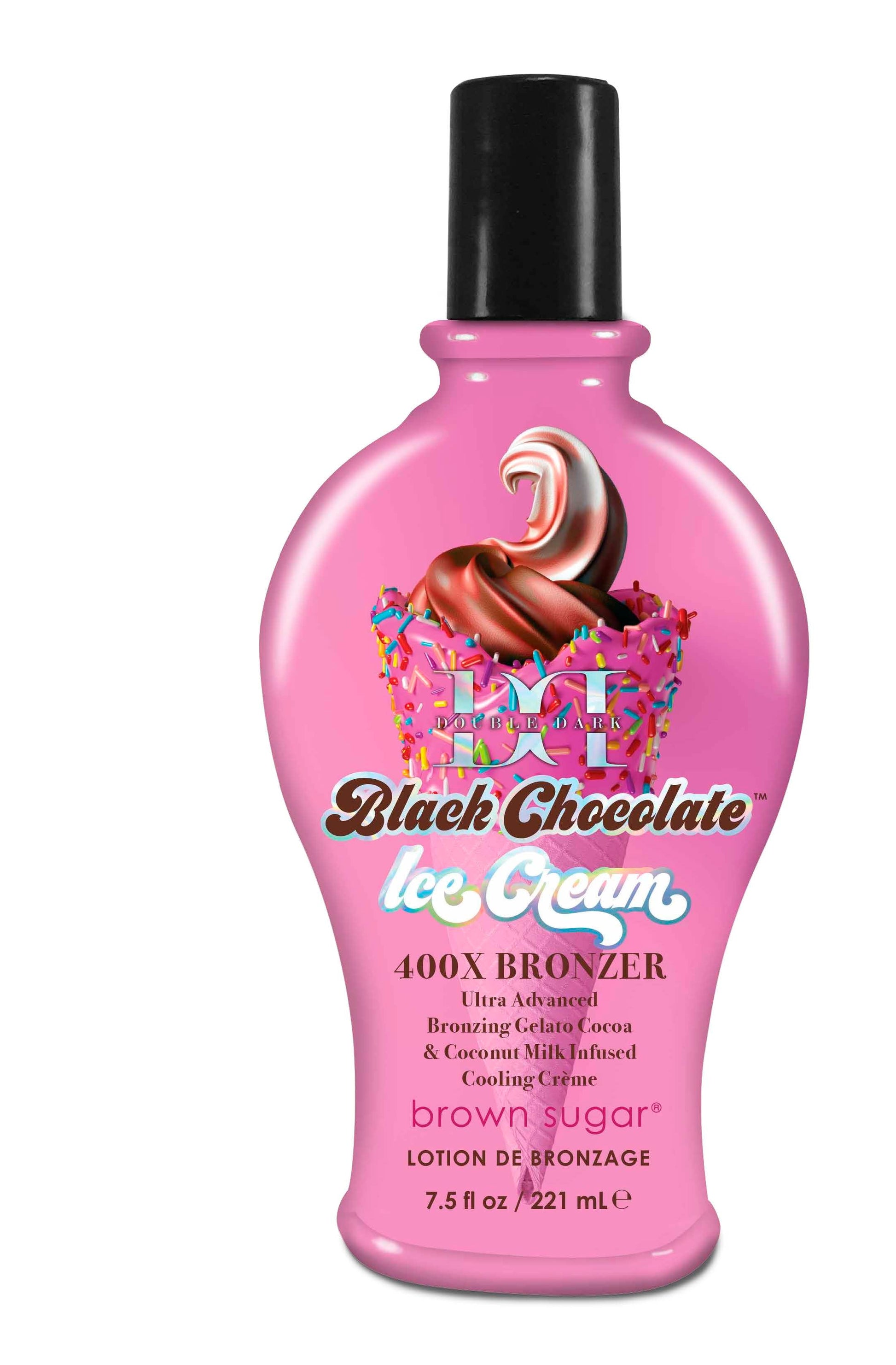 Indulge in the ultimate tanning experience with Double Dark Black Chocolate Ice Cream. Crafted in small batches, this ultra-advanced 400X bronzing formula delivers a deep, rich tan that will leave you feeling irresistible. The super-rich butter blend of cocoa, coconut, and avocado will condition your skin, while a caramel and carrot oil infusion provides remarkable depth of color. Super-silicones melt into your skin for a smooth, soft application, and a subtle cooling effect from coconut milk will leave you feeling refreshed.